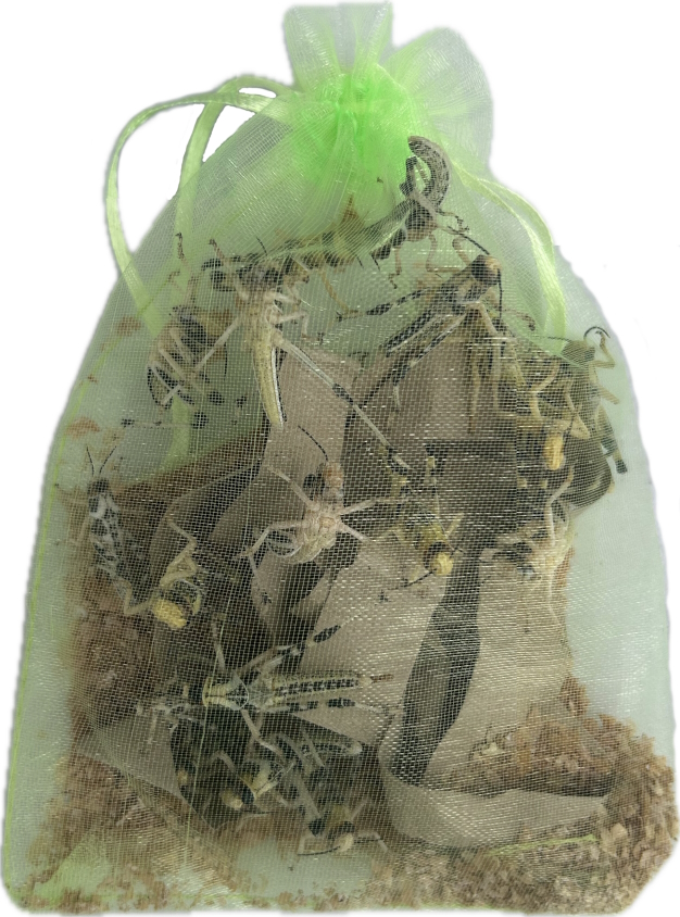 All the live insects we produce are raised fresh on our farm and sent from us direct to your door. These will be packed in a mesh bag, with shredded paper insert and feeding bran. The mesh bag will be inside a cardboard box which will fit throgh most standard letterboxes.
